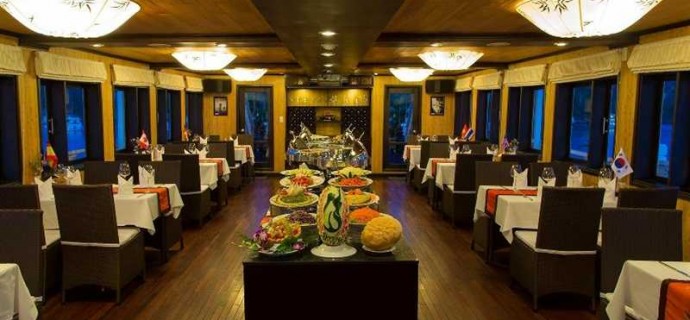 20:45 – 12:00: Your free time to relax with an exotic cocktail or whatever takes your fancy. Our bar has a wide range or wines, beers and liquors and is always a welcome sight for guests after a day on Halong Bay. Order a specialized massage in the room. Choosing with other activities boat cruise such as watch documentary movies, squid fishing or simply relax on our rooftop deck under the cover of a star filled sky.
