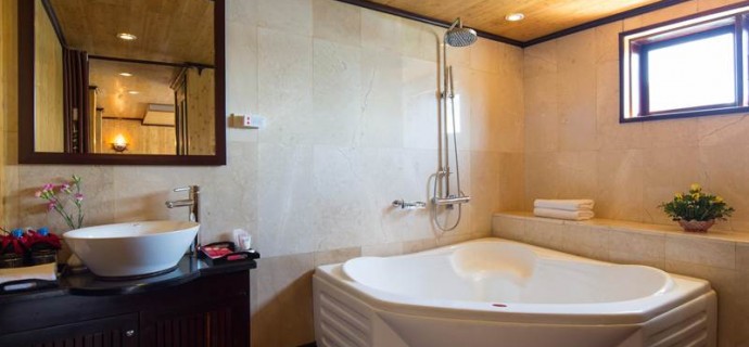 20:45 – 00:00: Evenings are beautiful on Halong Bay, and just because the sun goes down doesn’t mean the night is over. Take advantage of our onboard facilities or just relax to your heart’s content. Relax at our fully stocked bar with an assortment of local and international favorites. Try your luck at night squid fishing, watch a documentary film or simply relax on our roof top deck.